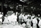 戦時統制時代及び戦後 京都市場は,発足以来順調に発展してきましたが,昭和12年に日華事変がぼっ発し,続いて昭和15年に主要食料品の公定価格制が実施されるに至り,市場本来の価格形成機能は失われ,単に集分荷の場所となりました。特に商品の評価機能を大きな業務としていた仲買人はその存在意義を失い,昭和16年には仲買制度が廃止されました。それに伴って,卸売会社も配給統制下の実施機関となりさがりました。青果,鮮魚に対する統制は,一時撤廃されましたが,まもなく再開されました。生鮮食料品の統制は,昭和22年の果実を皮切りに相つぎ撤廃され,仲買制度も復活,市場機能がよみがえってまいりました。また,朝鮮戦争が始まった昭和25年ごろから我が国経済の復興はめざましく,それについて中央市場の取扱量も伸長を続けました。